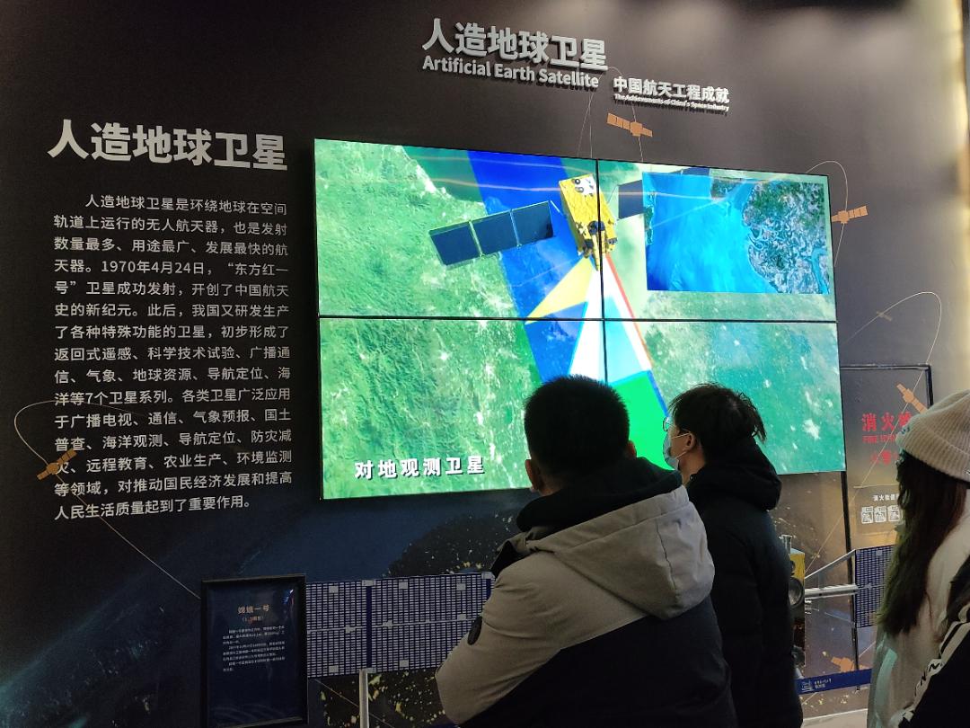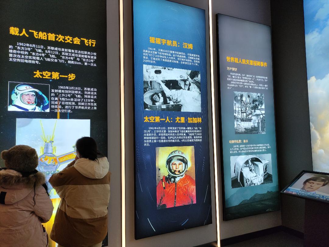 来到航天展馆,在讲解员的领导下,学员们了解:场馆一楼分为室内室外两个展区,室内展区包括航天器、发动机、导弹、火箭、中国航天和世界航天发展历程、宇宙知识等部分。室外展区包括俄罗斯“资源号”返回舱、“长征一号”火箭、“东风二号”导弹及神州五号飞船模型。该展览从“两弹一星”、运载火箭、人造卫星、探月工程、高分工程、载人航天工程和深空探测等方面详细介绍了我国航天事业发展进程。包含模型展品34件,实物展品6件。航天馆的二楼主要介绍哈工大与中国航天的关系,展柜中的每一件实物,都是爱国奋进的哈工大人辛苦浇灌的硕果。航天馆的三层展厅介绍了世界航天事业发展的过程,从运载火箭、人造卫星、载人航天等方面详细介绍各领域的发展过程及各国在不同领域为世界航天史的发展作出的各自贡献,如火箭起源于中国、第一位进入太空的地球人、第一位登陆月球的地球人等。