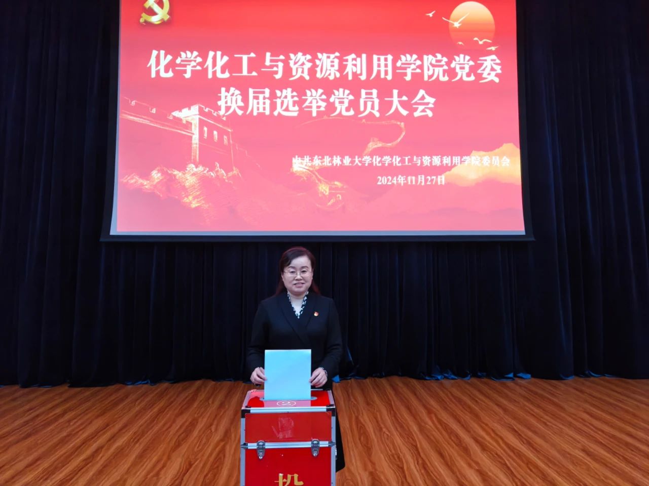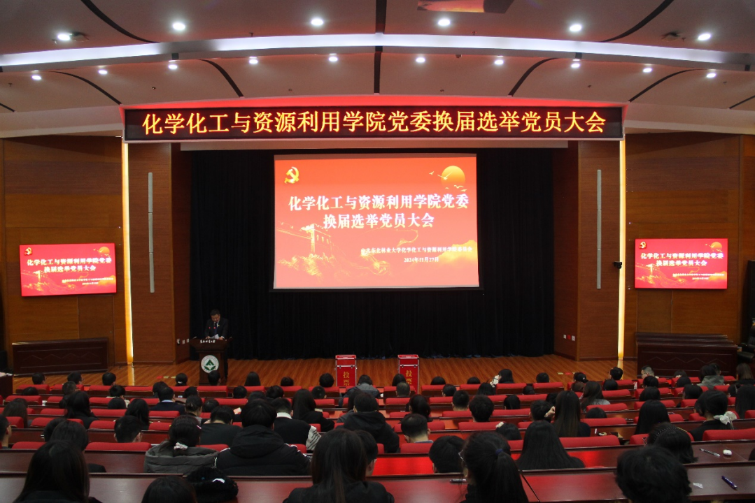 在党的光辉照耀下,中共东北林业大学化学化工与资源利用学院委员会迎来了又一个重要的历史时刻——党委换届选举大会。2024年11月27日下午,成栋楼425会议室汇聚了全体党员的目光与期待,共同见证了这一庄严而神圣的过程。化学化工与资源利用学院全体在校党员出席会议。