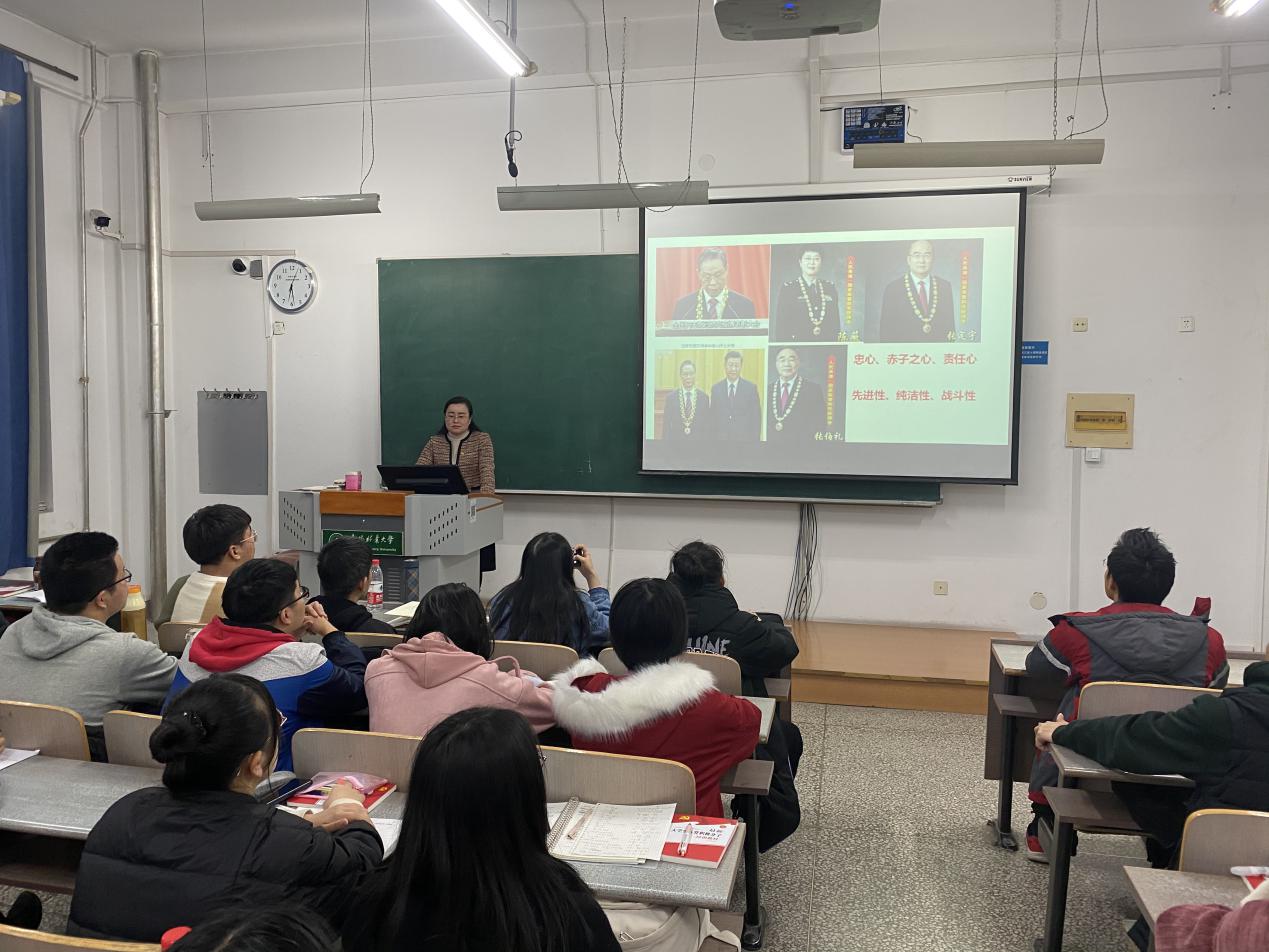 学院党委书记陈春霞为全体学员上了题为《心怀责任,勇于担当》的专题党课,她结合我校黄大年式教师团队、学院“学霸寝室”、学院教师为毕业生打包行李等事例,激励同学们热爱专业、热爱学院、勇于担当、善于担当。