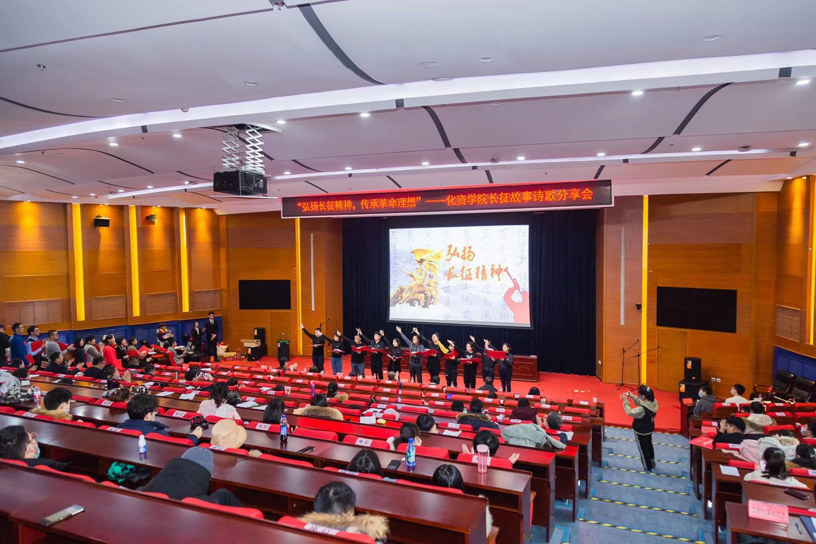 12月16日下午,化学化工与资源利用学院党委根据“党建引领 亮化行动”党建品牌建设计划和“九个一”四史学习教育工作方案的相关安排,于成栋楼四楼会议厅成功举办“弘扬长征精神 传承革命理想”长征故事诗歌分享会。学院党委书记陈春霞、党委副书记兼副院长祝胜男、副院长唐中华、学院师生党员、入党积极分子等近300人参加分享会。