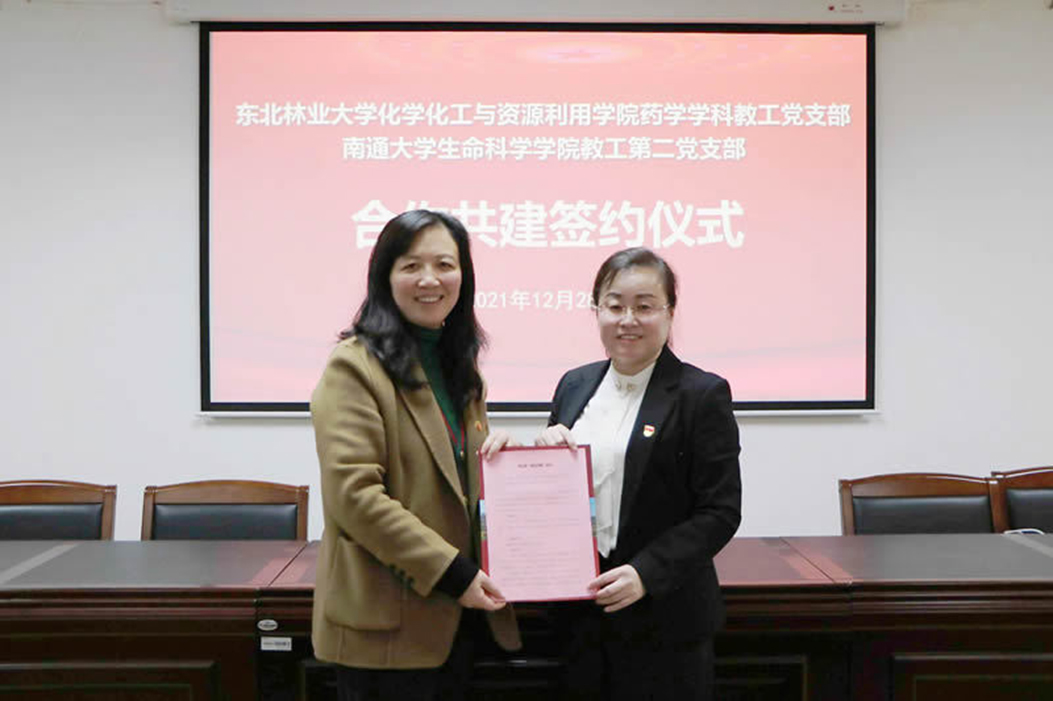之后,参建的东北林业大学化资学院药学学科教工党支部和南通大学生科院教工第二党支部代表分别发言,介绍双方在党史学习教育、党建思政、党建文化、党建活动等方面的特色工作和经验体会。