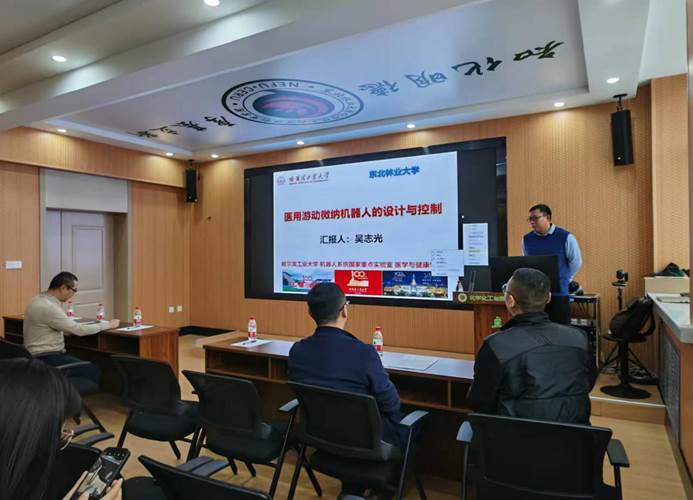 11月16日上午,国家高层次青年人才,洪堡学者,哈尔滨工业大学医学与健康学院,机器人系统国家重点实验室吴志光教授应我院孙铁东教授的邀请来院,为师生开展题为《医用游动微纳机器人的设计与控制》的学术报告。学院副院长唐中华教授主持会议。