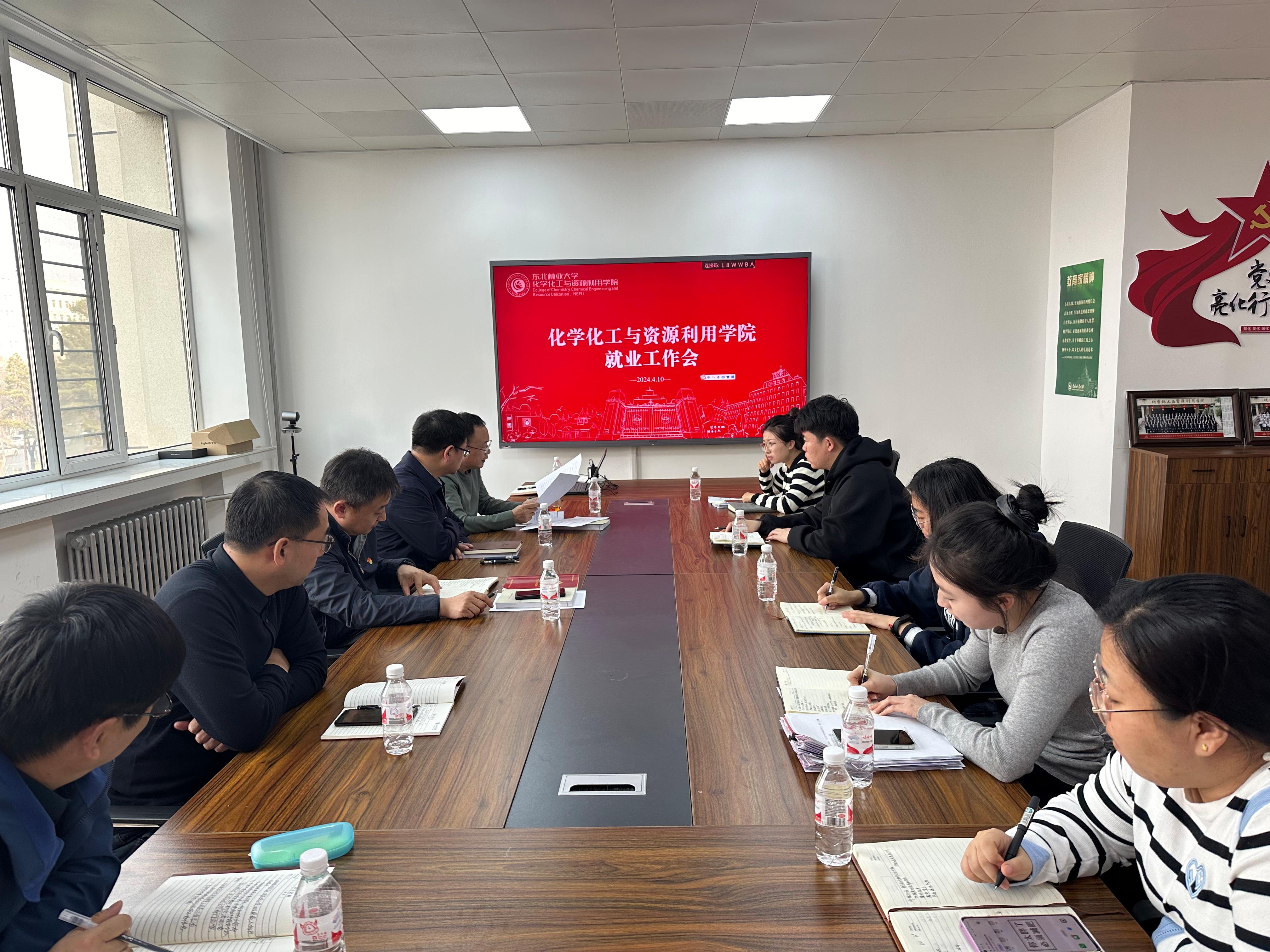 2024年4月10日下午,化学化工与资源利用学院在化资楼423会议室召开2024届毕业生就业工作推进会,对学院访企拓岗专项工作进行研讨和详细部署。学院领导班子成员、党委委员、辅导员出席会议,会议由学院党委副书记、副院长王金麟主持。