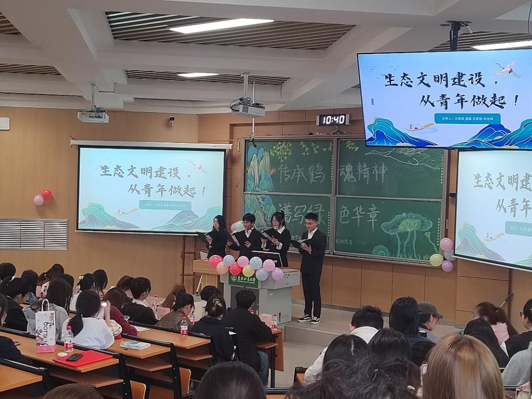 石美琪同学进行了以《平衡中协调共生,博弈中谋求发展》为主题的演讲。让同学们认识到,广大青年不仅是生态文明建设的参与者,还应成为生态文明新风尚最积极、最活跃的倡导者和引领者。