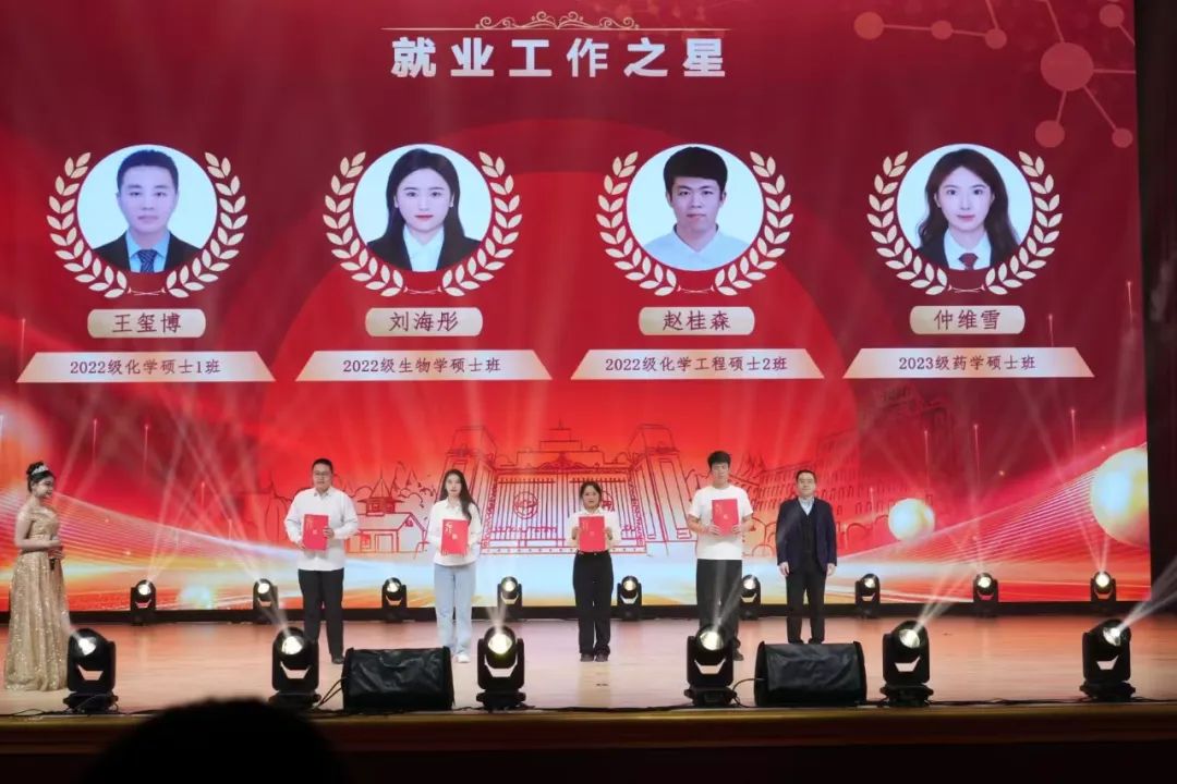 李洪峰处长为文体之星、就业服务之星颁奖。就业服务之星获2022级化学工程硕士赵桂森作为代表发言。