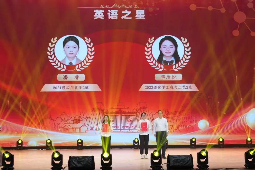 陈春霞院长为科创之星、学习之星颁奖。学习之星2022级化学工程与工艺本科生芦梦甜同学作为代表发言。