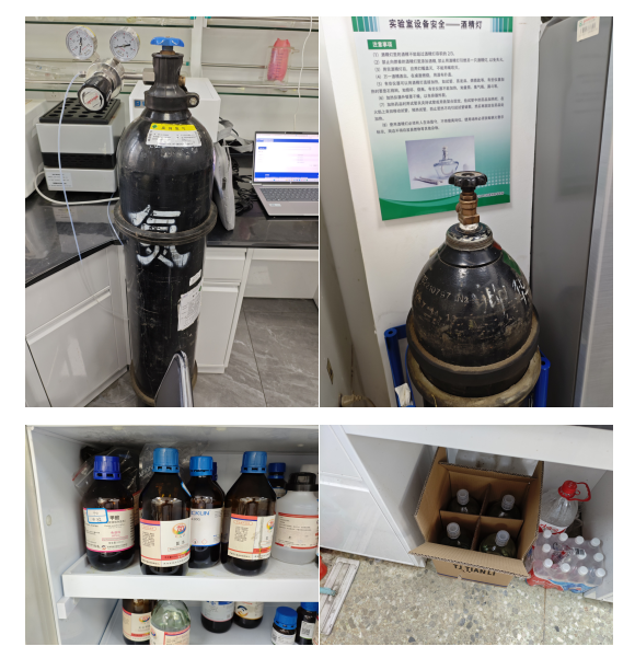 在自检过程中,发现存在部分以下安全隐患:1.管制类试剂未按要求单独存储;2.实验室化学药品未按配伍禁忌规范存储;3.不用的用电设备,它的插座没有及时拔下来;4.用过的试剂没有及时的返回储存柜中;5.实验室气体钢瓶未固定,气瓶没有安全帽;6.学生在实验过程中未穿实验服;7.实验室急救药箱药品过期。 对存在隐患的实验室下达整改通知,要求立即整改,并撰写安全检查整改报告上交学院存档。