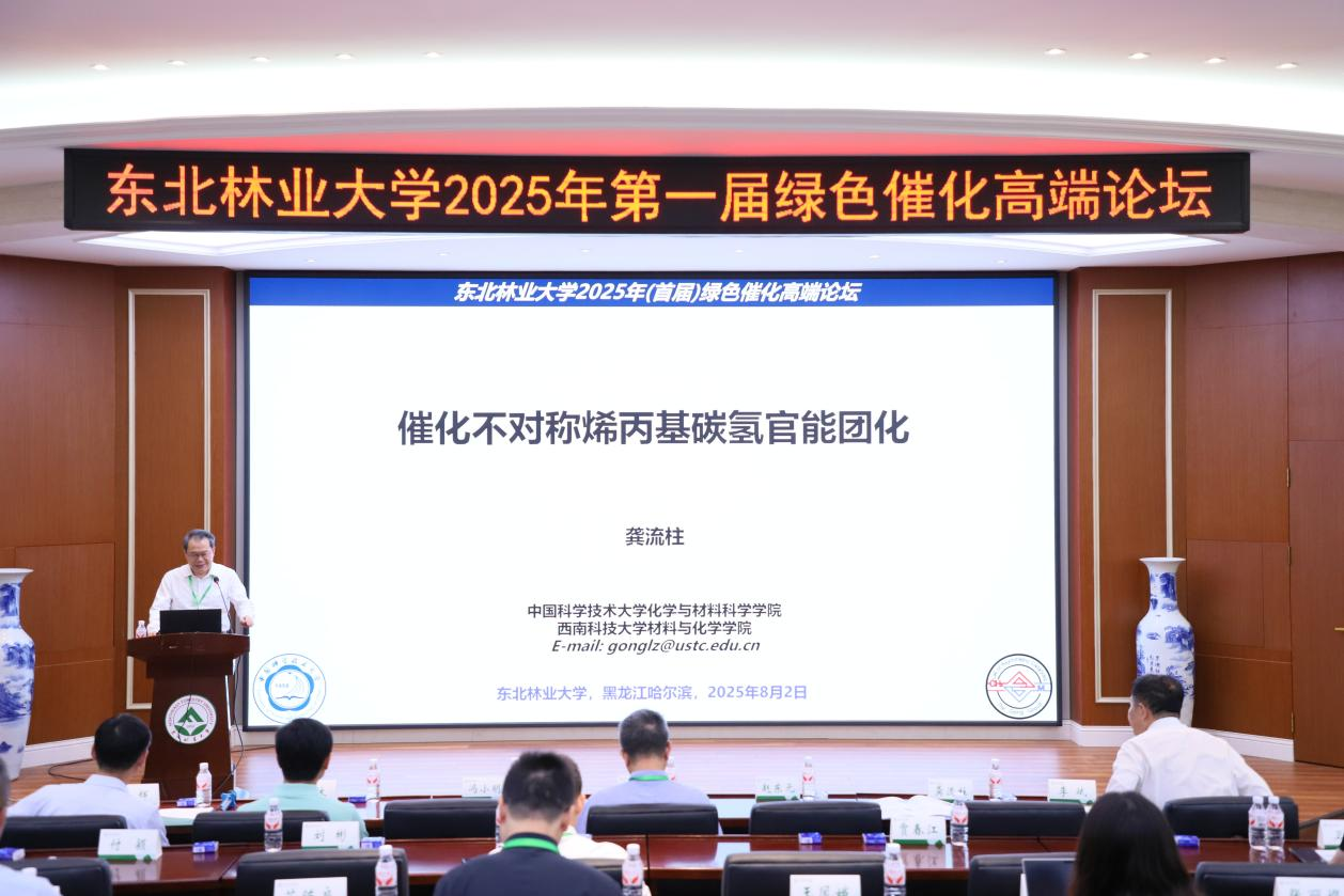 2025年8月1-4日,由东北林业大学主办,化学化工与资源利用学院承办的“第一届绿色催化高端论坛”在我校成功举办。来自北京大学、复旦大学、四川大学、中国科学院大连化物所、中国科学技术大学等30余家科研单位的160多位知名专家、学者以及应聘青年人才代表等参加了本次论坛。