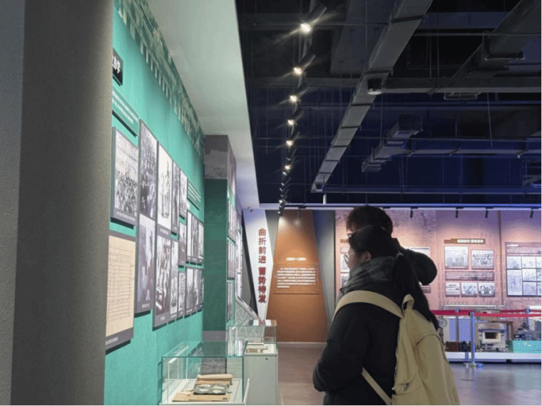 在自由参观环节,同学们缓缓移步,沉浸在校史的浩瀚海洋中,陈旧的实验仪器诉说着科研先辈的攻坚克难,详实的图文资料展示了学校在人才培养与科学研究上的累累硕果。同学们在展板前驻足凝视,互相交流着内心的感受,感悟着“学参天地,德合自然”的精神真谛。