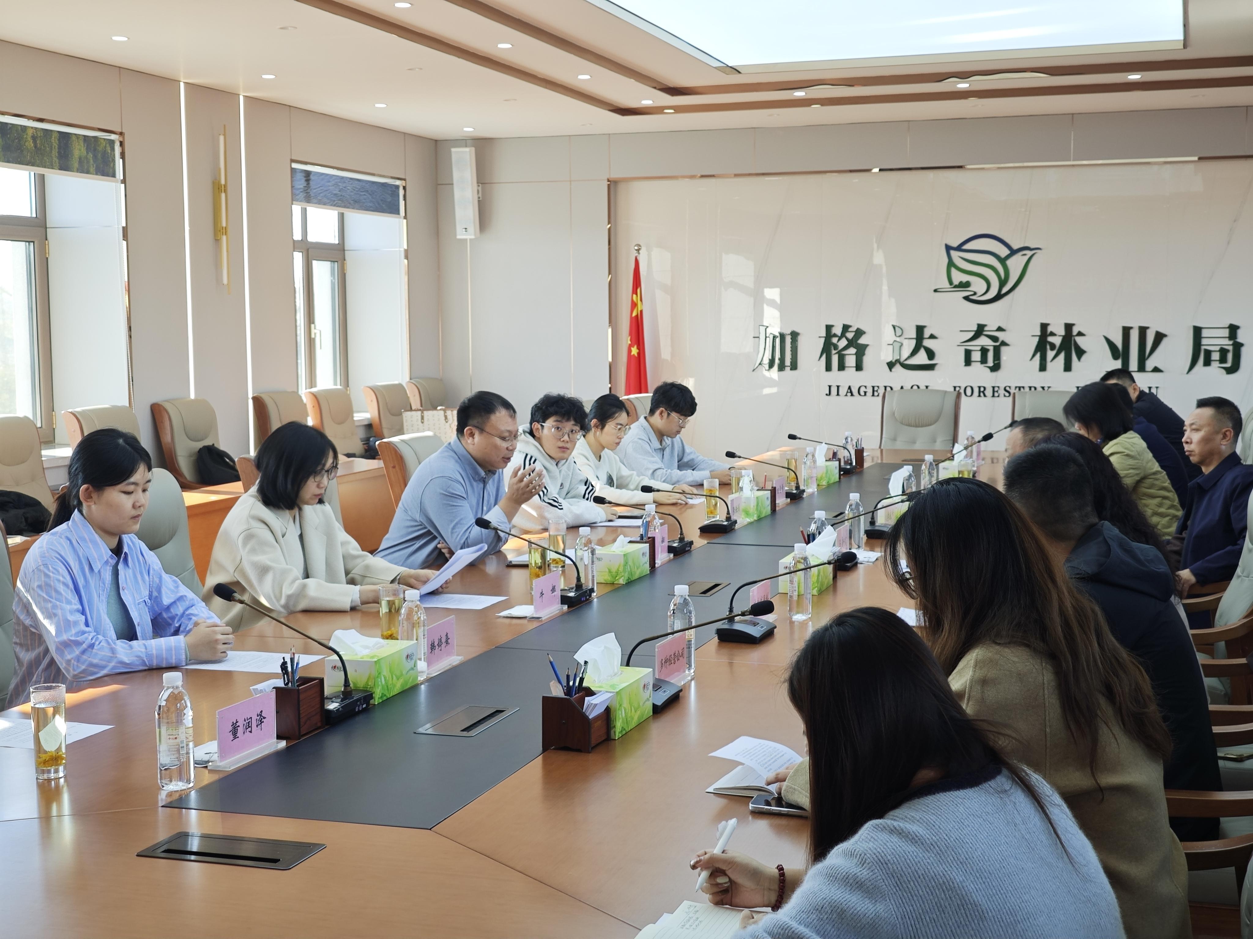 李庆峰代表大兴安岭林业集团发言。他表示,林业集团与东北林业大学的战略合作由来已久,集团将持续关注学校在高水平林业人才培养方面的创新举措,大力支持校企合作的高质量发展。马新武代表加格达奇林业局对陈立钢一行的到来表示热烈欢迎,希望通过科技小院等优质校企合作平台,共同推动中药材等林下经济产业的转型升级。栾志艳对当地中药材产业发展的基本情况进行了详细介绍,当地主要通过推进野生中药材保护抚育、仿生栽培、规模化种植以及种子种苗基地建设等模式来推动中药材产业发展,迫切需要种植方式和分析检测的科技化改革。