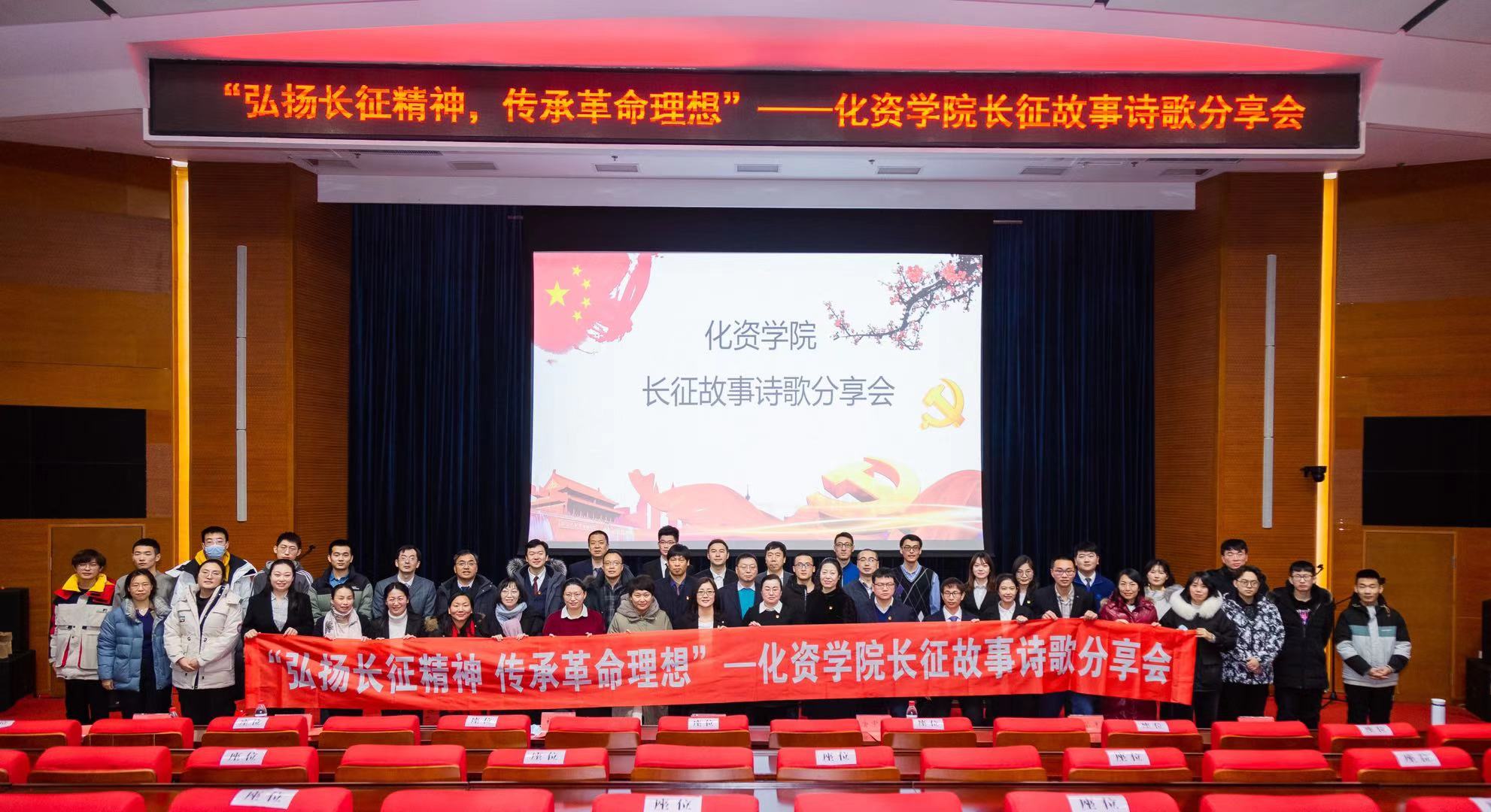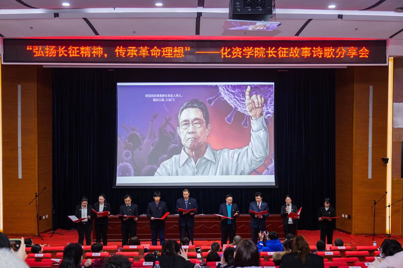 12月16日下午,化学化工与资源利用学院党委根据“党建引领 亮化行动”党建品牌建设计划和“九个一”四史学习教育工作方案的相关安排,于成栋楼四楼会议厅成功举办“弘扬长征精神 传承革命理想”长征故事诗歌分享会。学院党委书记陈春霞、党委副书记兼副院长祝胜男、副院长唐中华、学院师生党员、入党积极分子等近300人参加分享会。