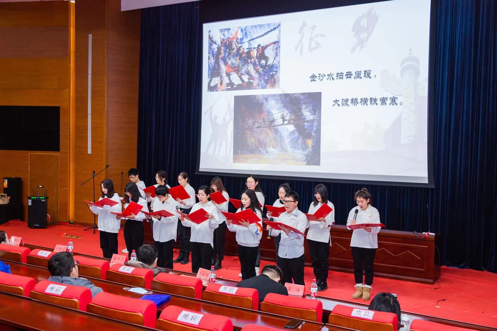 《中国力量》《七律长征》《金色的鱼钩》《棋高一着飞夺泸定桥的战略战术》《雪地中的小太阳》等长征故事、诗歌朗诵精彩纷呈、振奋人心。一句句饱含真情的诗句,一声声发自内心的话语,展现出化资师生传承伟大长征精神、弘扬革命传统的昂扬风貌。