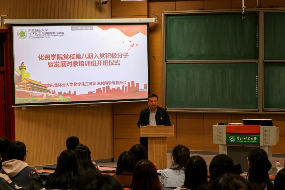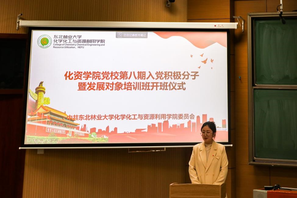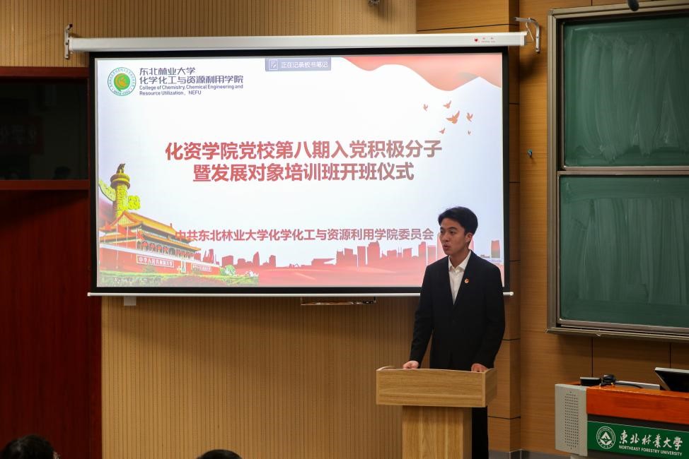 2023年4月10日,化学化工与资源利用学院党委在锦绣楼T301室举办了第八期入党积极分子暨发展对象培训班。学院党委书记蔡宇,马克思主义学院教授李爱琴、各年级辅导员以及培训班全体学员参加开班仪式,开班仪式由学院团委书记孙悦主持。