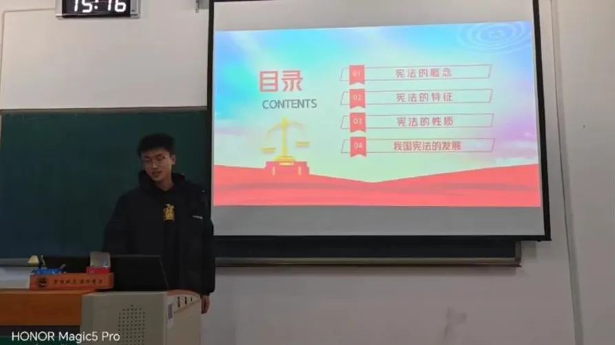 学院团委牵头组织各年级团支部开展“学宪法,讲宪法”主题团日活动,各团支部通过情景表演、诗歌朗诵、观看视频、讲解PPT等多种形式带领同学们学习宪法知识。同学们切实参与到主题团日活动其中,感悟宪法精神,增强宪法观念,厚植爱党爱国爱社会主义情感。在集体学习中增加青少年学生宪法等法律知识的普及率,增强学生宪法意识和法治素养。