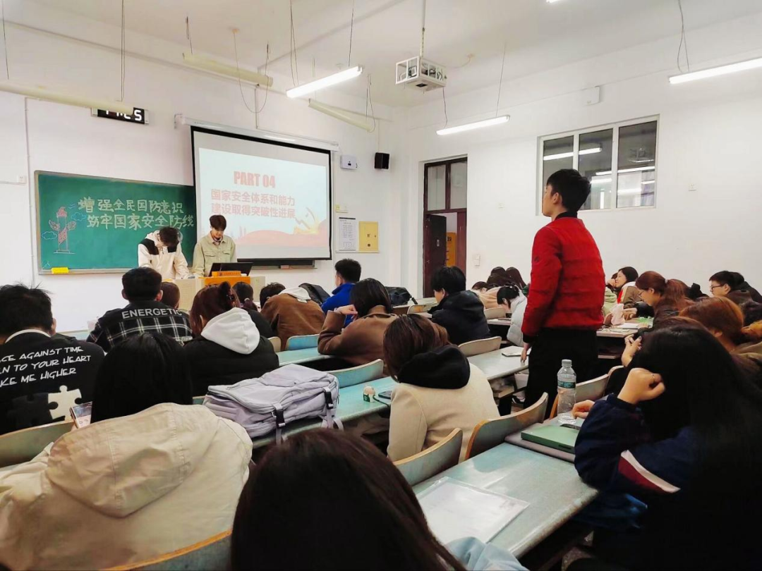 化学化工与资源利用学院化学类2023级2班支部在本次团日活动中采用了多种形式,如同学演讲,朗诵,积极设置互动环节等。团支书刘政瑜通过积极与同学们进行互动及生动地讲解国家安全的相关知识,令同学们受益匪浅。通过各支部别出心裁的团日活动设计,我院青年学子们不仅深刻地了解到了国家安全的重要性,更深化了同学们对维护国家安全的责任感与使命感。