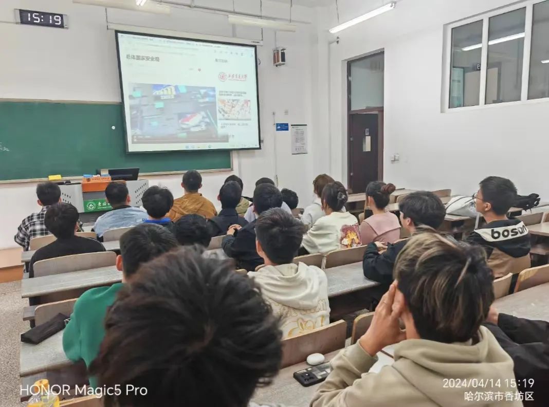 4月14日15时,学院辅导员老师和各年级本科生与研究生以班级、专业、寝室等为单位,通过中国大学生在线官网及中国大学生在线视频号、微博、B 站、 抖音等直播平台观看了收看“千万师生同上一堂国家安全教育课”主题公开课的直播。直播结束后,同学们都意识到要从思想上重视国家安全,从行动上积极参与维护国家安全。作为一名高校学生,从我做起,为形成“国家安全,人人有责”的良好局面,为构建国家安全的人民防线贡献力量。