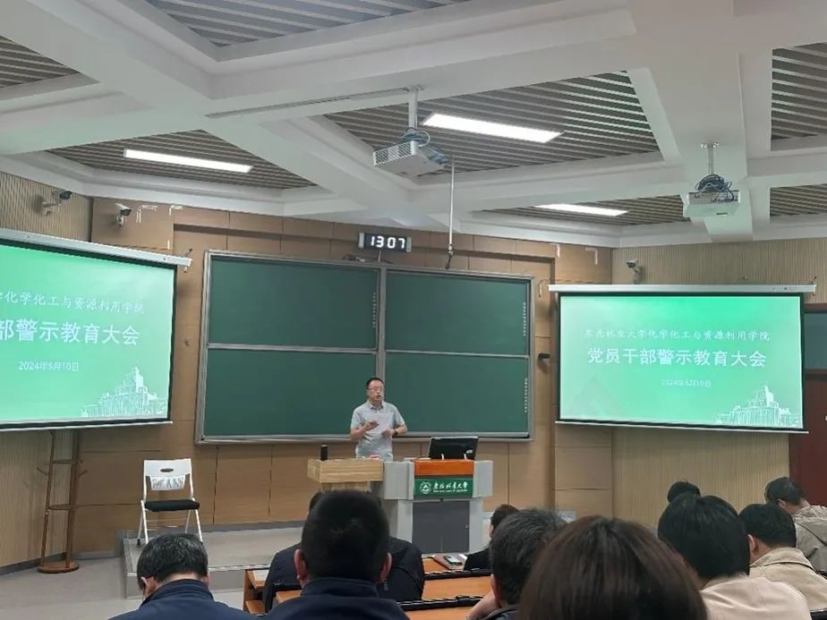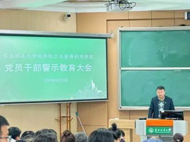 为深入学习贯彻习近平新时代中国特色社会主义思想,加强党员干部警示教育,让党员干部受警醒、明底线、知敬畏,加强师德师风建设,提升教师的职业素养和道德水平,增强纪法意识和安全意识,以案示警,以案为戒,东北林业大学化学化工与资源利用学院于2024年5月10日在锦绣楼T302室召开党员干部警示教育大会。