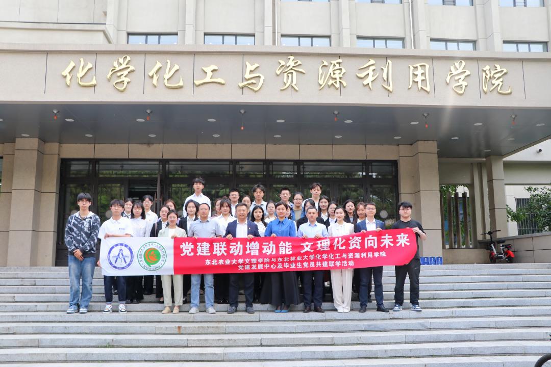 为进一步推进党纪学习教育走深走实,引导党员干部守好廉政底线,始终保持忠诚、干净、担当的政治本色,进一步探索党建工作新思路、新方法、新路线。6月5日,东北农业大学文理学院来我校与东北林业大学化学化工与资源利用学院联合开展以“党建联动增动能,文理化资向未来”党纪联学暨毕业生党员主题党日活动。东北林业大学化学化工与资源利用学院党委书记蔡宇、党委副书记兼副院长王金麟,东北农业大学文理学院党委副书记李曼、副处级辅导员辛贵杰,两学院党建发展中心学生负责人及毕业生党员代表参加本次主题党日活动。