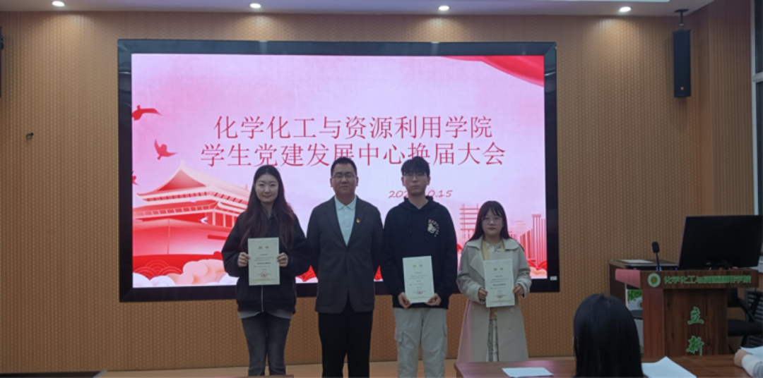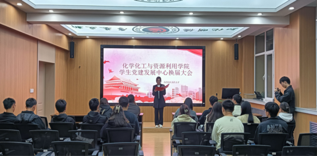 为扎实推进学院党建品牌建设,不断加强学院学生党建工作,持续发挥党建引领作用,2024年10月15日晚18:30,化学化工与资源利用学院学生党建发展中心在化资楼321教室顺利完成换届工作。化学化工与资源利用学院研究生辅导员李敬宇老师、前任本科生主任马建廷等成员与会。
