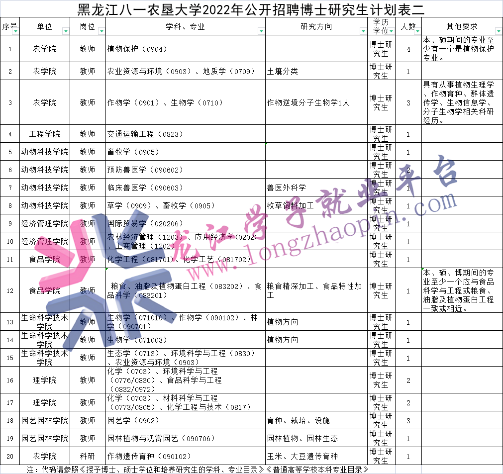 (五)黑龙江八一农垦大学2022年公开博士研究生招聘计划表
