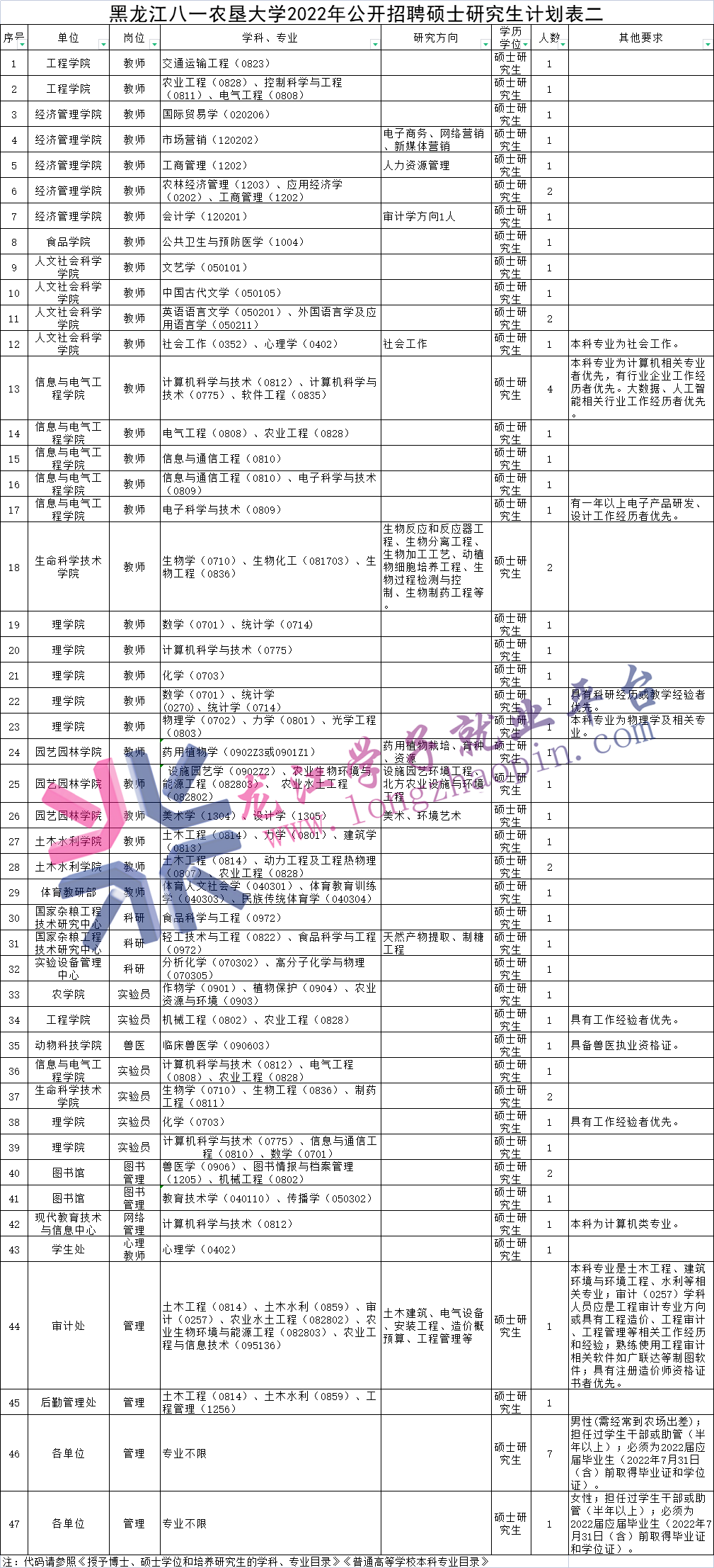 (三)黑龙江八一农垦大学2022年公开招聘硕士研究生计划表