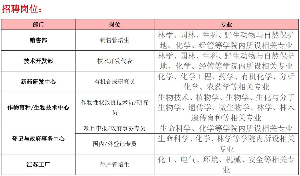 (3)职能方向(农药登记等):学院内所设专业均符合。